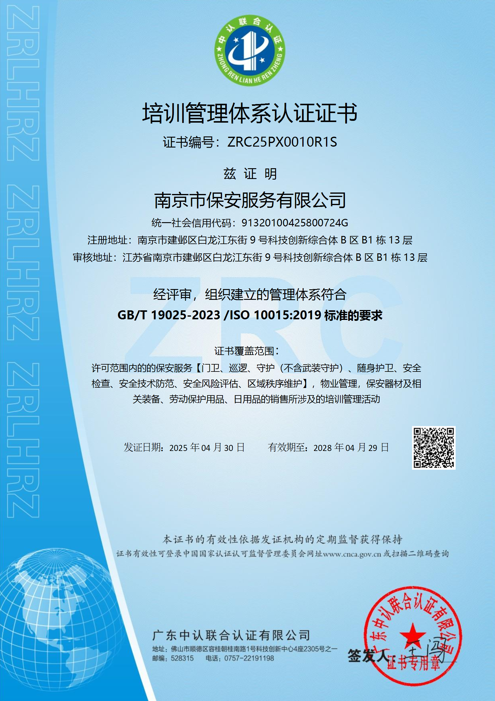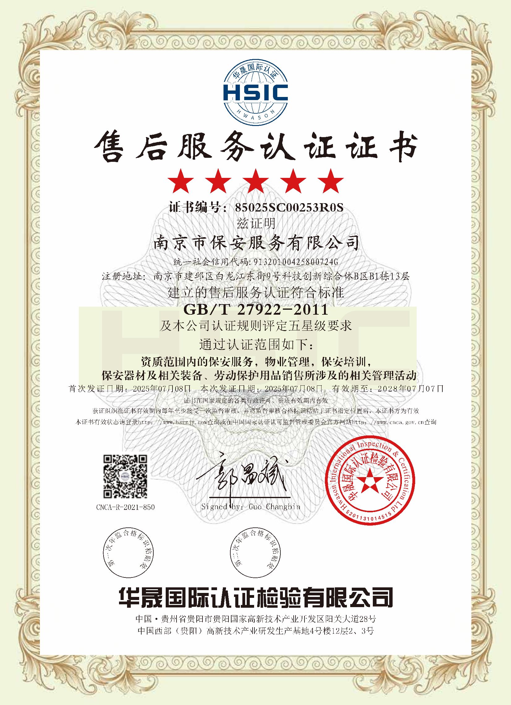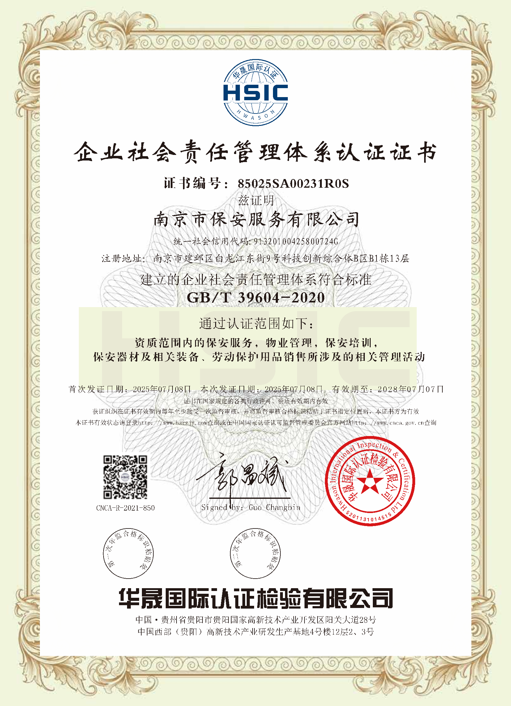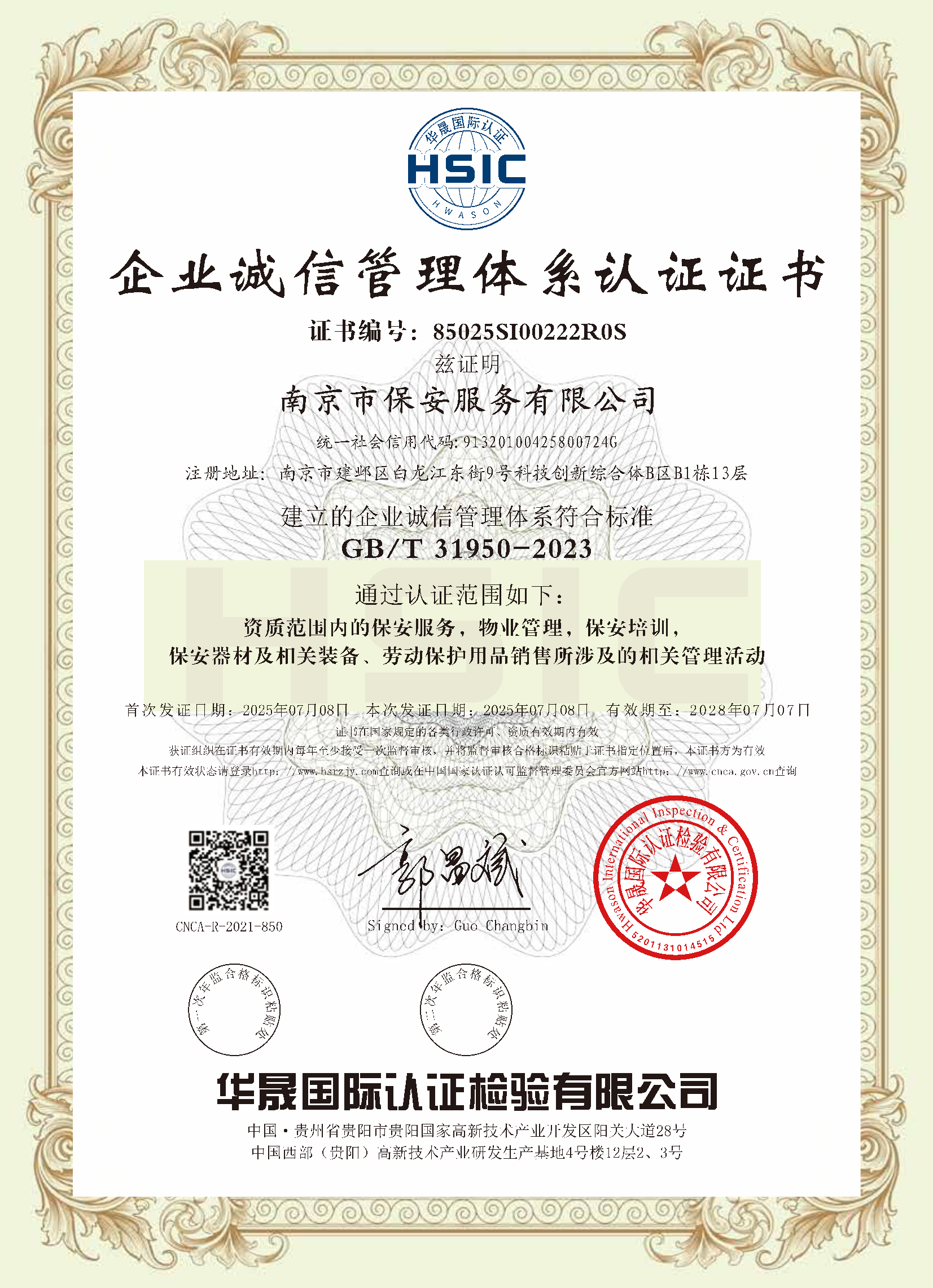 祝賀:南京市保安服務(wù)總公司通過企業(yè)誠信管理體系認(rèn)證和企業(yè)社會(huì)責(zé)任管理體系認(rèn)證